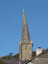 There is another fine cross, also containing spurs on its head, arms and shaft, set onto the gable end of the porch roof. This is a slender cross which is square at the base and chamfered above. Below this cross and attached to the face of the wall is an old and battered looking sun-dial.The guttering to the right of the porch is made of cast iron and shows the date of 1889. The whole of the church appears to be built of small flat slab-type stones and contains a square tower, with a spire above. This ancient church is dedicated to St Peter and is built in the early English style. It has a lofty tower, containing five bells, surmounted by a tall spire, which leans considerably to one side. Records show that in 1623 a meteor, weighing 23 lbs, fell to earth at Strachleigh, in the parish of Ermington, and buried itself a full three feet into the ground. |